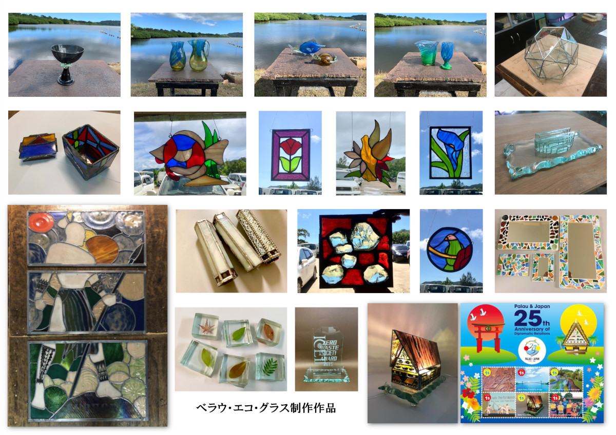 ベラウ・エコ・グラス・センターは、コロール州リサイクルセンターに属し、廃ガラス(主にビール瓶)を活用した吹きガラス作品制作を進めていますが、三田市ガラス工芸館はJICA(国際協力機構)を通してボランティアの派遣を行い、現地講師スタッフの育成を担っています。2017年8月28日、三田市とJICAの間で覚書が締結され、自治体連携ボランティアとしての技術派遣を推進し、その中で、工房施設の拡張と現地スタッフのガラス制作技法の習得を目指し、パラオでの教育施設、観光資源としての役割、そして大きな視点の中でリサイクルシステムの拡大を図ってきました。