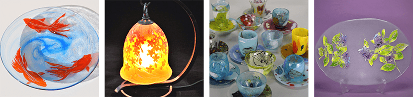 キルン(電気炉)を使ってガラスを溶かして器やガラス彫刻、アクセサリー等の作品を作ります。キルンワークにはパート・ド・ヴェール、フュージング等様々な技法があります。サンドブラスト、吹きガラスと組み合わせることもできます。